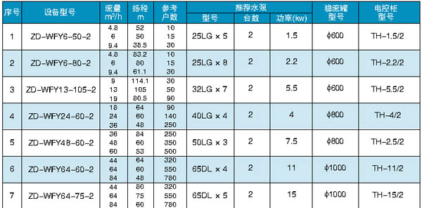 八、無(wú)負(fù)壓供水設(shè)備選型參考表
